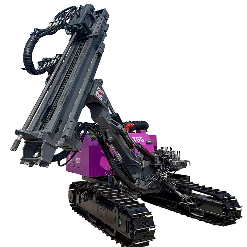 for efficient rock penetration in quarrying and mining operations. Featuring a powerful percussion hammer system, this heavy-duty equipment utilizes compressed air to deliver rapid hammer strikes through the drill string, enabling effective drilling in hard rock formations.