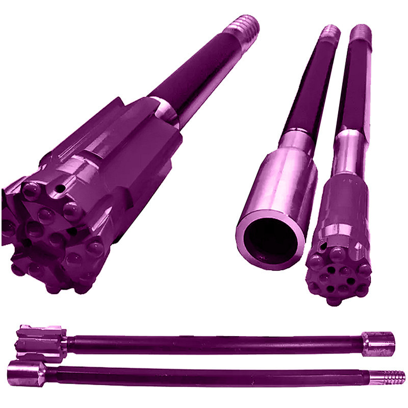 Boorstang met T38/T45/T51 draadsysteem. Met sleutelvlakken om te helpen bij het koppelen/ontkoppelen van stangen voor verlengingsboringen. Gebruikt bij bankboringen en lange-gatboringen. Produceer hexagonale en ronde doorsneden, hexagonale stangen zijn stijver, zwaarder en brengen energie efficiënter over, terwijl de spoeling wordt verhoogd. Ronde stangen zijn over het algemeen lichter dan hexagonale stangen en worden normaal gesproken gebruikt bij verlengingsboortoepassingen. Met het langere staal dat de neiging heeft om groter in diameter te zijn, wordt conventioneel verlengingsstaal gekenmerkt door een dubbele schroefdraad aan elk uiteinde van het staal.